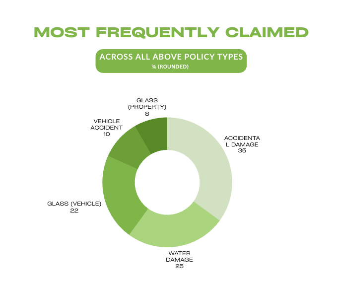 Across all policy types discussed in this article – Own Home, Holiday Home, Rental/Landlord, and Vehicle – two trends dominate: accidental damage and water damage.